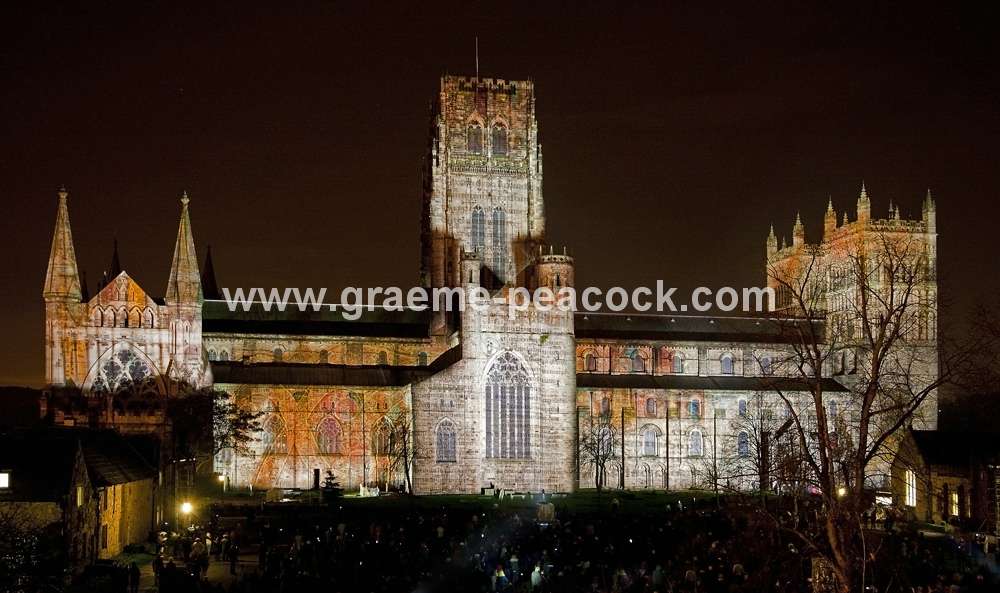 Durham Cathedral during Lumiere 2011, Durham City, County Durham (Crown of Thorns by Ross Ashton)