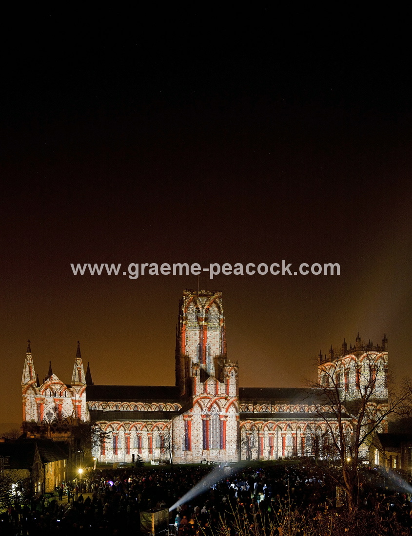 Durham Cathedral during Lumiere 2011, Durham City, County Durham (Crown of Thorns by Ross Ashton)