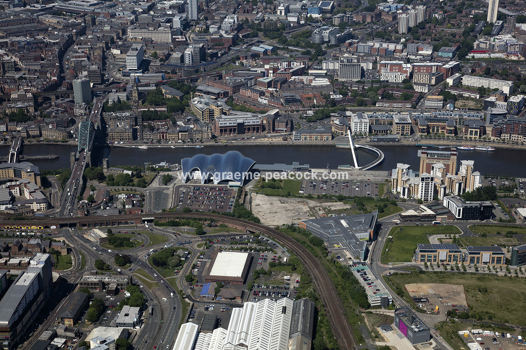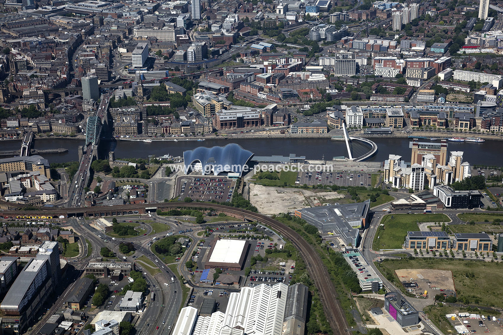 Aerial view of Newcastle quayside and City Centre, Newcastle upon Tyne, Tyne & Wear, graeme peacock, stock photographs