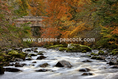 Logie Bridge and River Findhorn in autumn near Forres, Moray, North East Scotland, photographs, graeme peacock