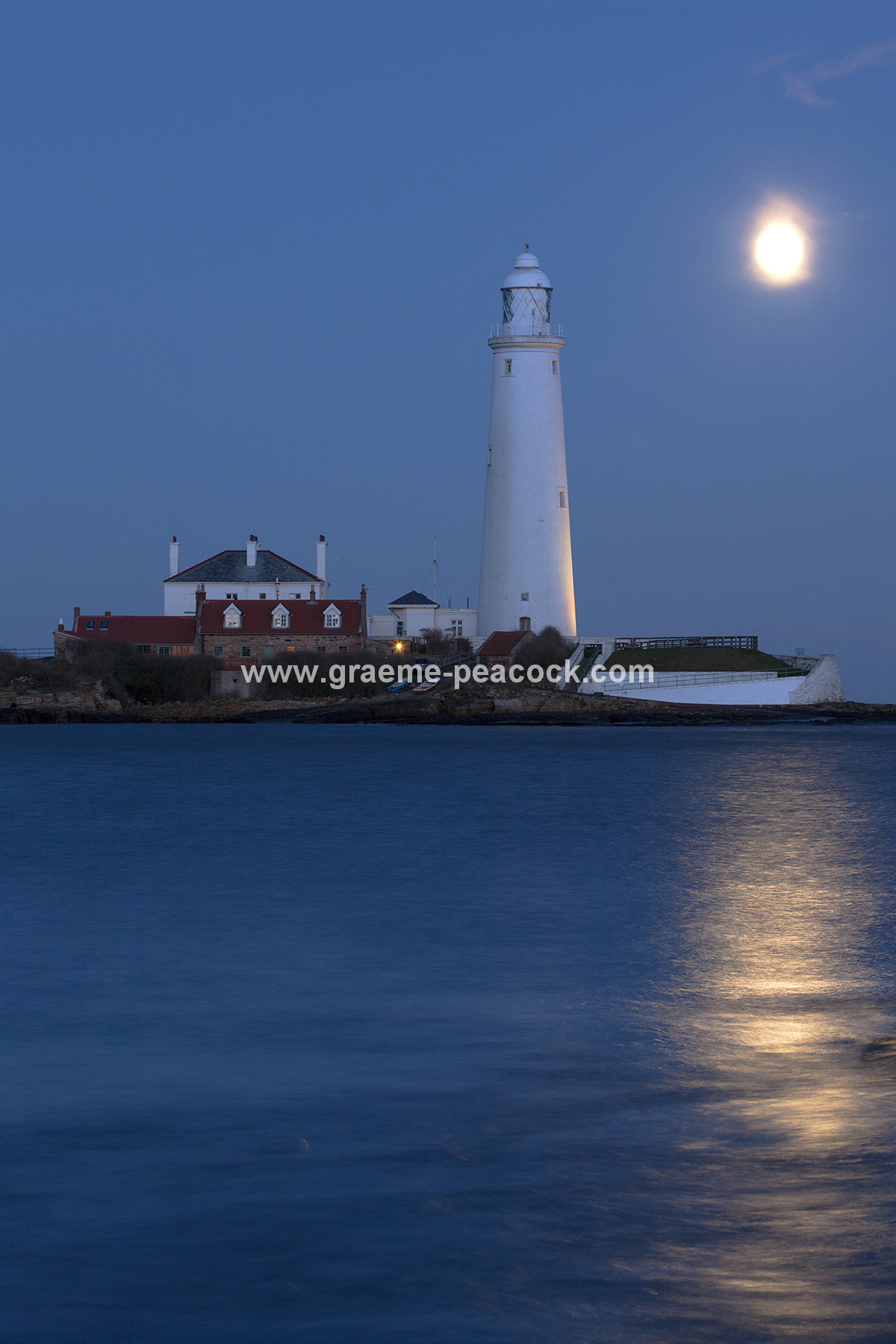 Tags: Graeme Peacock Moon rise over St Mary's Island North Tyneside stock photography Whitley Bay