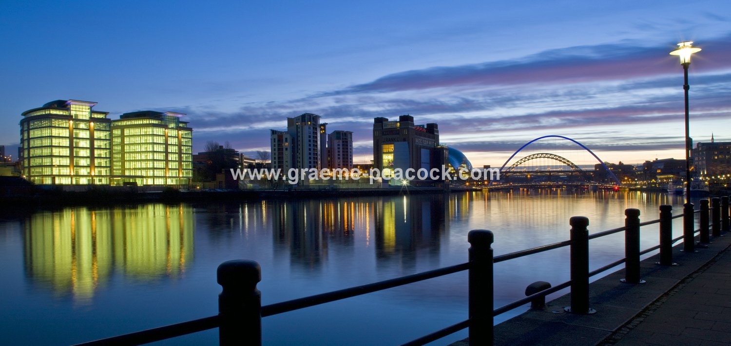 Photographs, Newcastle quayside at dusk, Tyne & Wear, UK