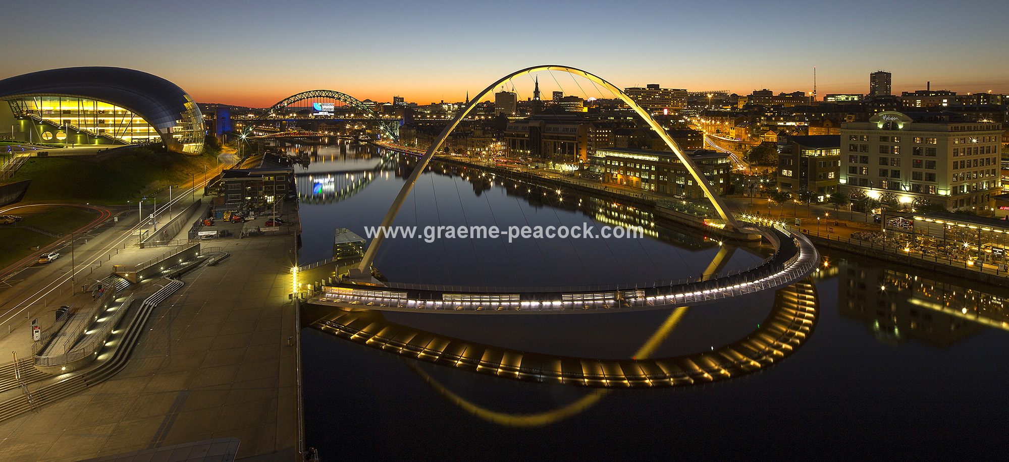 Gateshead Millennium Bridge at dusk, Gateshead, Tyne and Wear