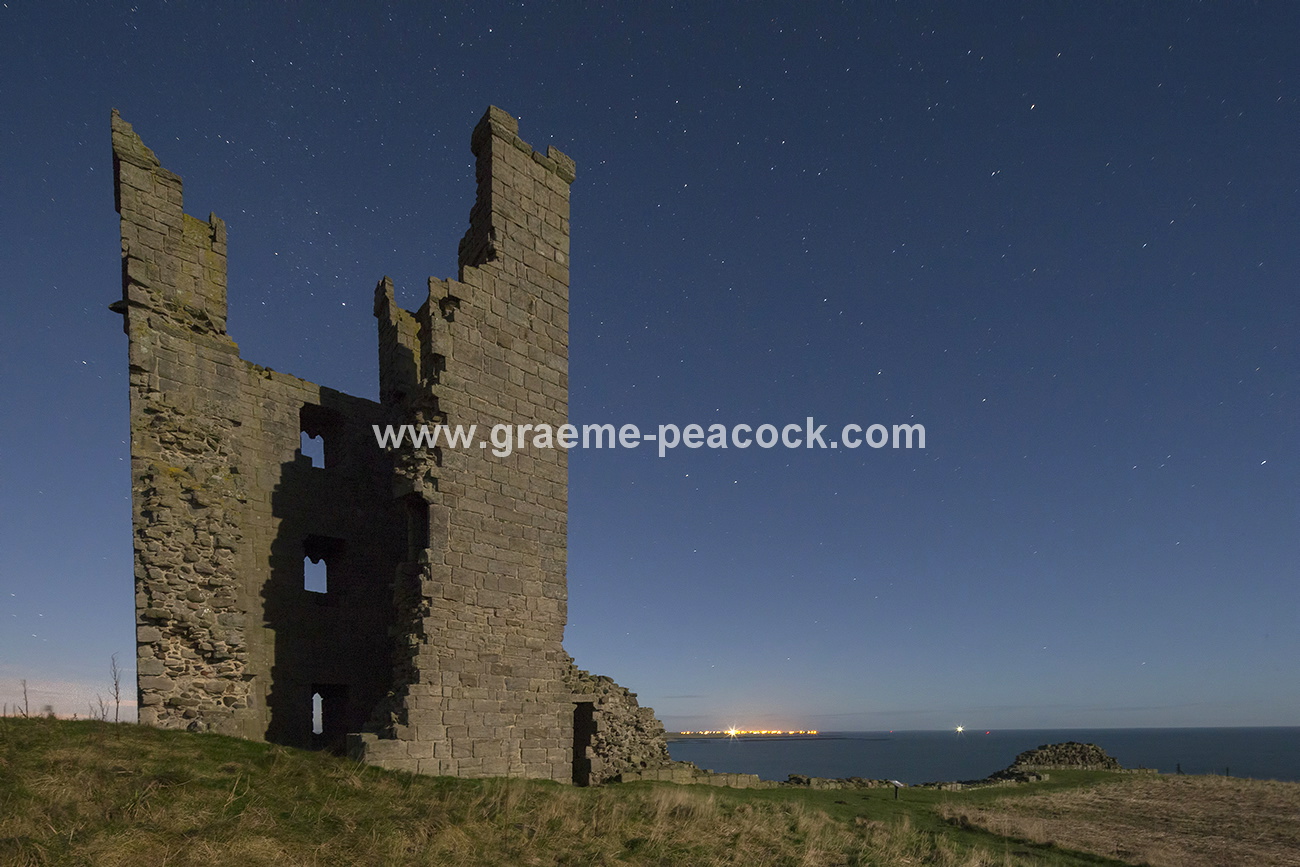 Star gazing under ‘Dark Skies’ at Dunstanburgh Castle near Craster, Northumberland, stock photography, graeme peacock